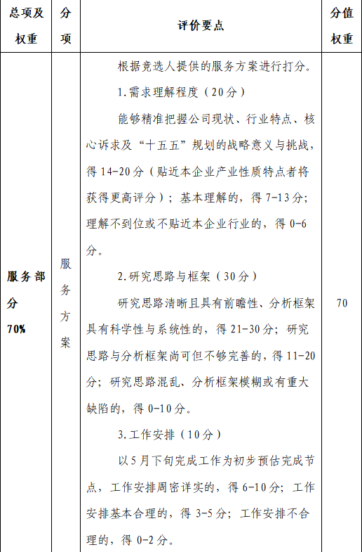2.评分因素(分值具体分配)
